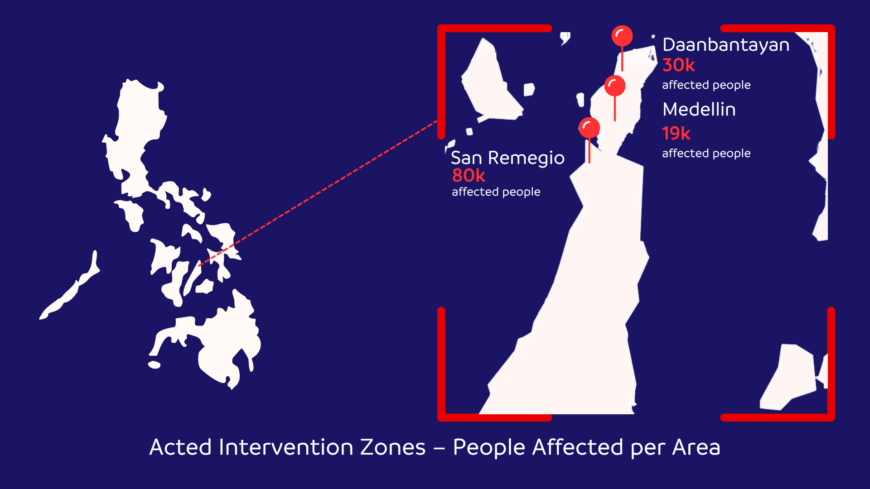 Acted, present in the Philippines since 2012 with experience in emergency response and long-term resilience programming, conducted a Rapid Needs Assessment (RNA) to identify urgent needs and guide the immediate response. Findings reveal critical gaps in water, sanitation, shelter, food assistance, and infrastructure repair.