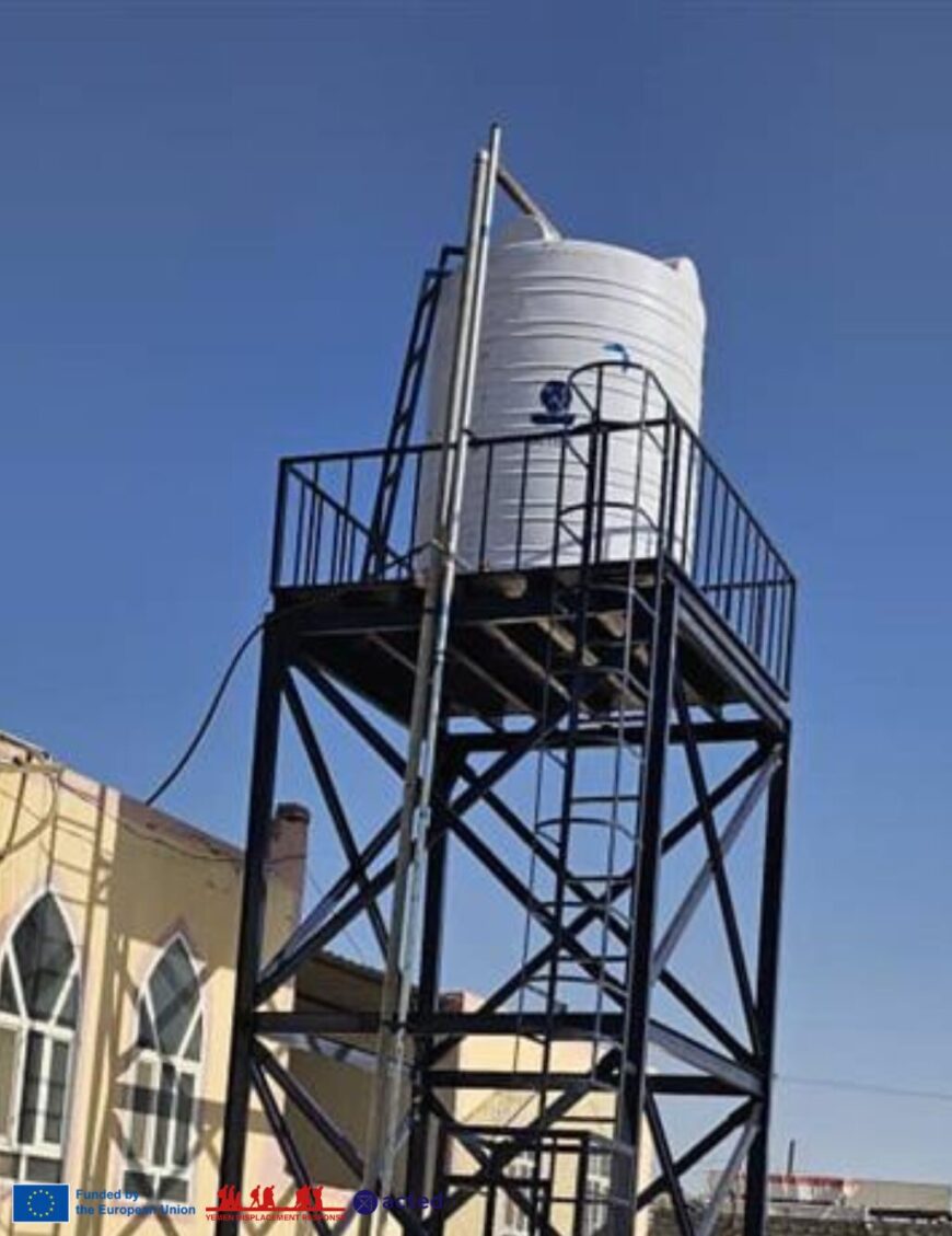 Pour améliorer la situation, grâce à l’Union européenne, Acted a mis en œuvre des projets communautaires visant à associer le développement du site au renforcement de l’autonomie de la communauté. Les membres de la communauté du site d’Al Hami ont pris l’initiative d’identifier la pénurie d’eau comme un besoin prioritaire lors d’une discussion de groupe et ont élaboré un plan d’action avec le soutien d’Acted. Sur la base de ce plan d’action communautaire, Acted a soutenu la construction d’un réservoir d’eau de grande capacité, l’installation d’un réseau de canalisations et la création de quatre points de distribution stratégiquement situés dans les zones résidentielles. Les projets ont été menés par des travailleurs qualifiés et issus de la communauté. En amenant la source d’eau à la communauté, l’intervention visait à redonner du temps et de la sécurité à la vie de plus de 740 résidents du site de déplacés internes d’Al-Hami.